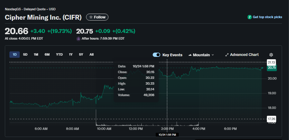 Die Aktienhändler reagierten schnell. Cipher Mining stieg am Tag der Einreichung der Unterlagen um etwa 13 %, während auch andere Minenunternehmen Zuwächse verzeichneten, da die Anleger die Nachrichten eingepreist hatten.