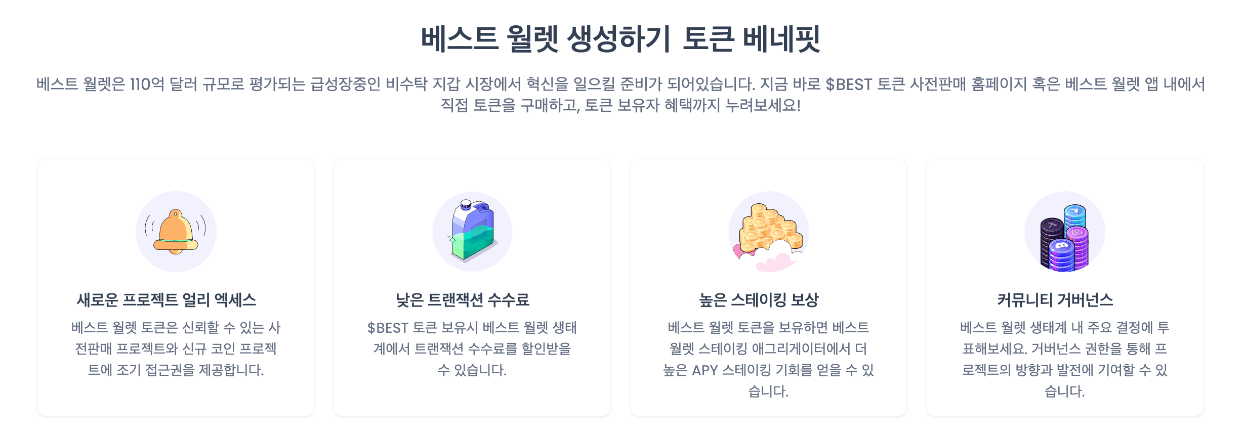 Wenn Sie $BEST halten, erhalten Sie ermäßigte Gebühren, hohe Einsatzprämien, vorrangigen Zugang zu wichtigen Vorverkäufen von Kryptowährungen und Governance-Rechte, einschließlich des Rechts, über die Richtung des Web3-Wallets abzustimmen.